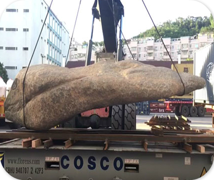 The size of this boulder is 6200x2700x1400mm ,and it weights around 28.5 ton.s . It could only be delivered by FR (Flat Rack), and the packing should be strongly supervised and approved by the shipping line before delivery.